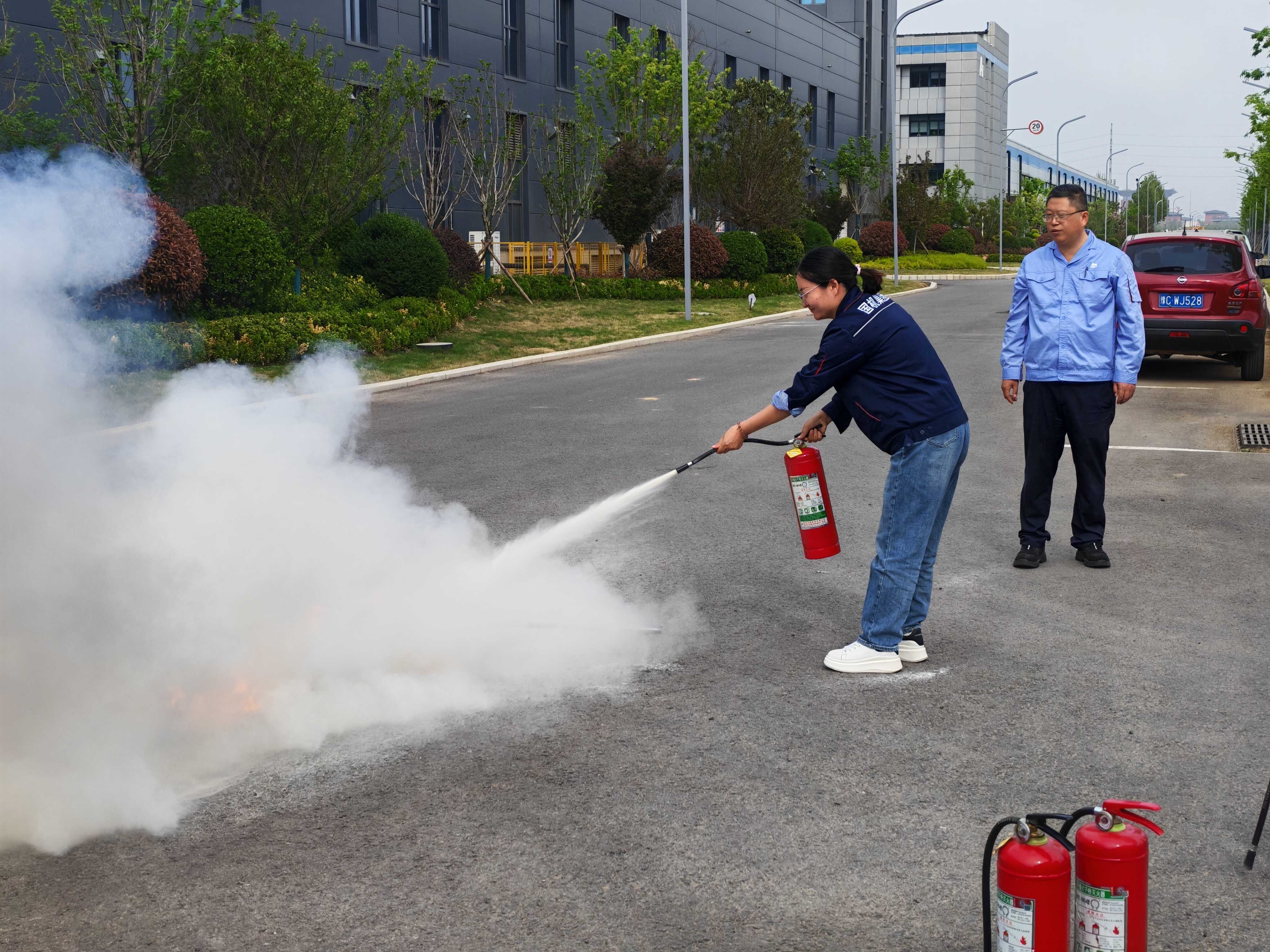 演練模擬車間電氣線路老化引發(fā)火情,現(xiàn)場(chǎng)員工發(fā)現(xiàn)險(xiǎn)情后第一時(shí)間呼救上報(bào),并同步開(kāi)展初期火情撲救??傊笓]迅速研判火情,立即啟動(dòng)火災(zāi)應(yīng)急預(yù)案并下達(dá)處置指令。消防警鈴響起后,各工作小組快速響應(yīng)、各司其職,有序完成人員疏散、被困人員搜救、傷員應(yīng)急處置、現(xiàn)場(chǎng)警戒、后勤保障等操作。人員集結(jié)后,疏散引導(dǎo)員完成人數(shù)清點(diǎn)上報(bào),安全管理員結(jié)合演練場(chǎng)景講解滅火器使用、初期滅火及火場(chǎng)逃生知識(shí),并組織全員開(kāi)展實(shí)操演練,全員均熟練掌握滅火器“提、拔、握、壓”核心操作流程。